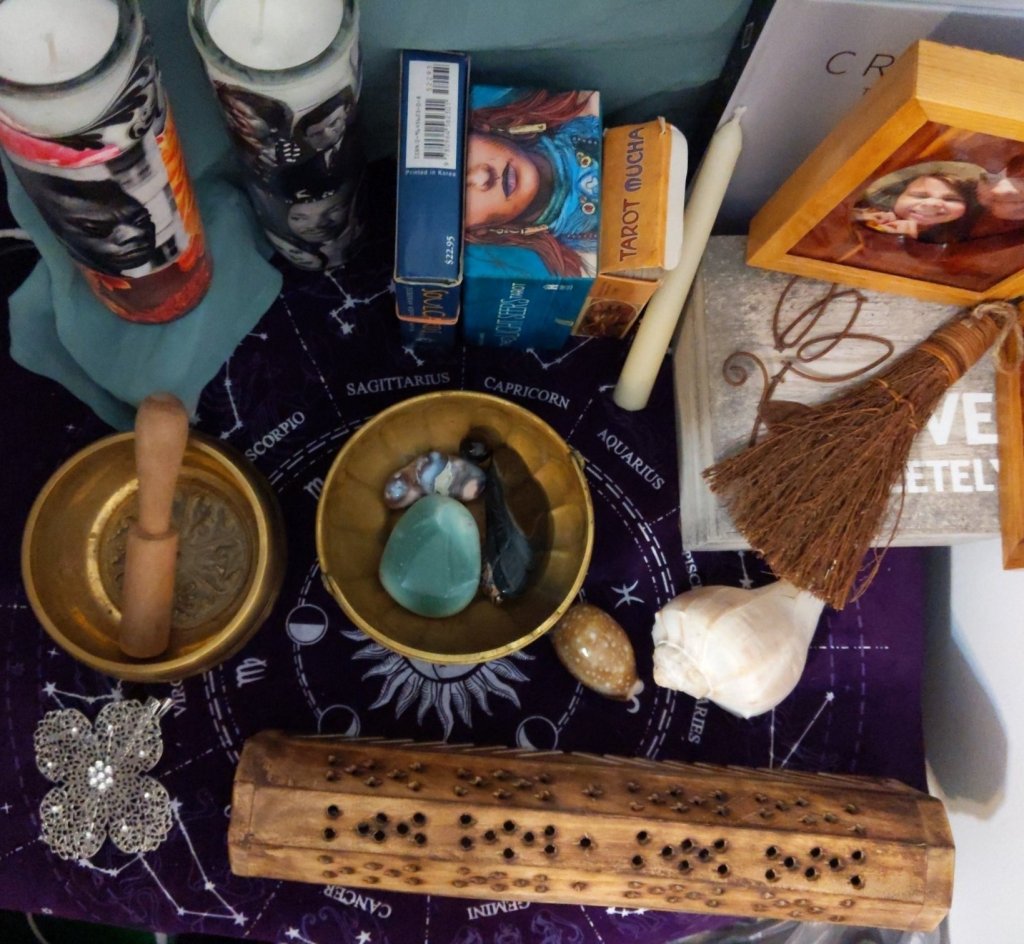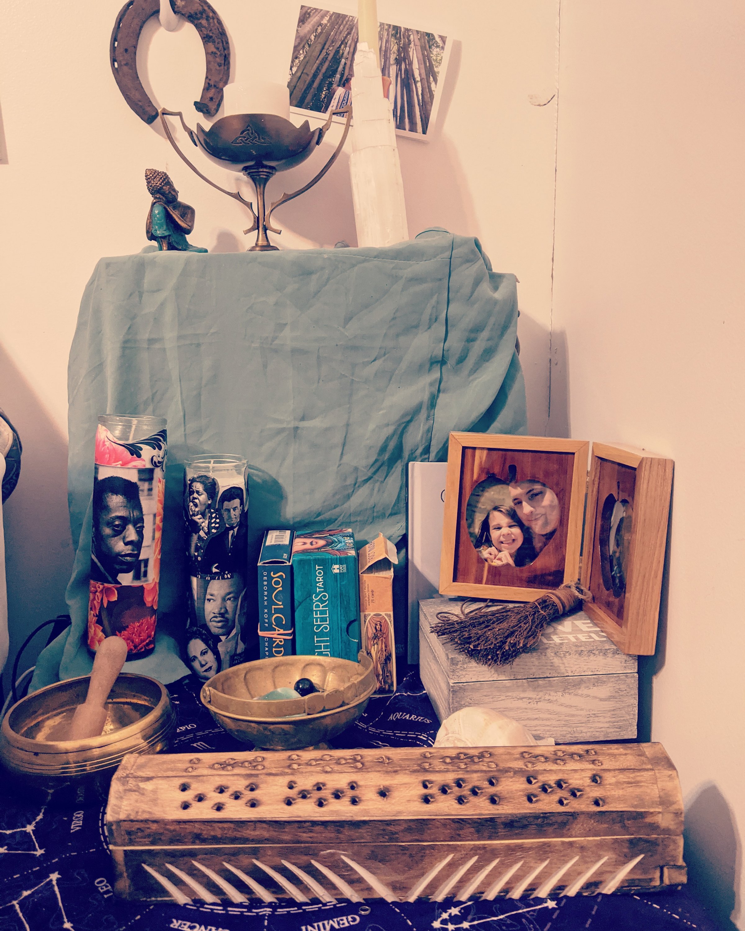 Though it is modest, and a tad busy (with limited space), I invite you in to the outer workings of my eclectic spirituality.